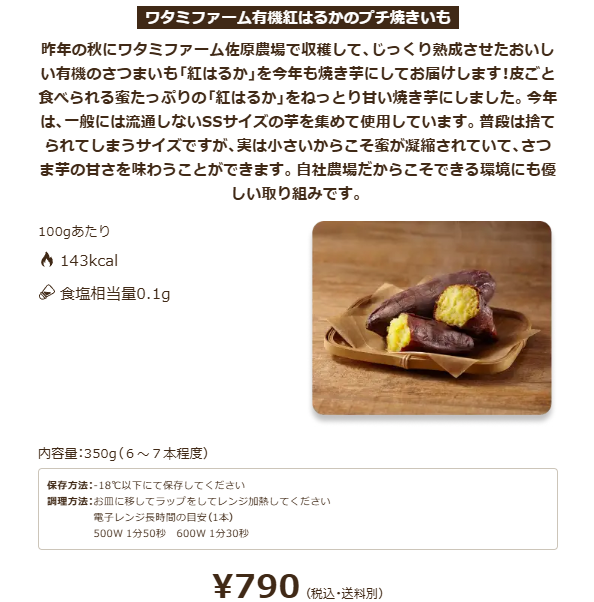 ワタミプレミアムで特におすすめなのは「ワタミファーム有機紅はるかのプチ焼きいも」です。